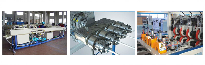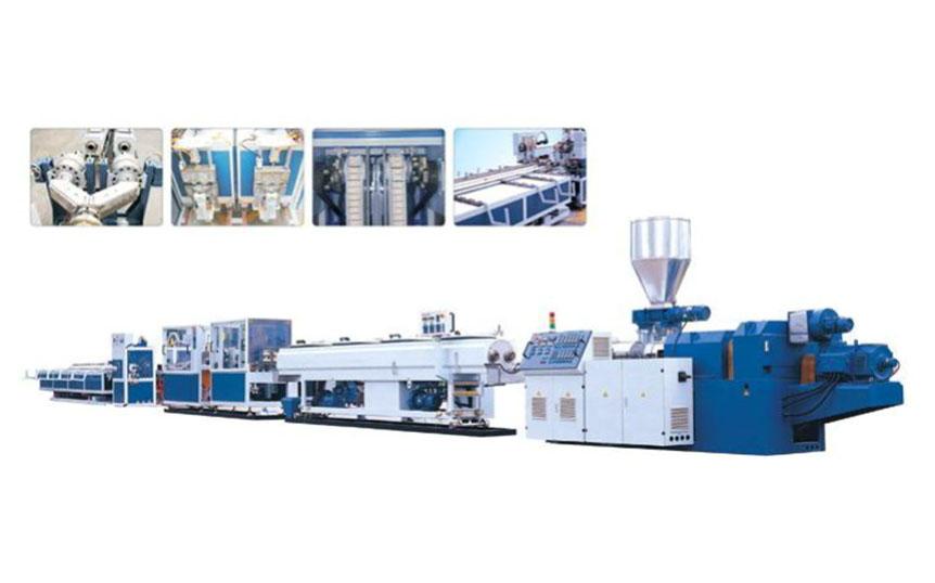 PVC 雙管擠出生產線生產的產品主要應用于建筑穿線管,電工管等,一流的品質融進了多年經驗, 主機采用錐形雙螺桿擠出機,提高混煉效果,擠出壓力高。雙管擠出模具。生產效率高,成型穩定。采用雙管真空定徑技術,噴淋冷卻,確保管材質量。獨立控制的整體結構的雙管牽引機構和同步切割裝置。設備緊湊,占地面小。配合準確及隨意設定的定翻和堆放裝置。