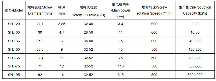SJS 系列平行雙螺桿擠出機廣泛用于共混-改性-增強-氯化聚丙烯和高吸水性樹脂的脫揮處理;可降解母料-聚酰胺縮聚-聚氨脂加聚反應的擠出;碳粉-磁粉的造粒-電纜用絕緣料-護套料-低煙低鹵阻燃型 PVC 電纜料及各種硅烷交聯料的制備等。小機型主要用于科研-教學。