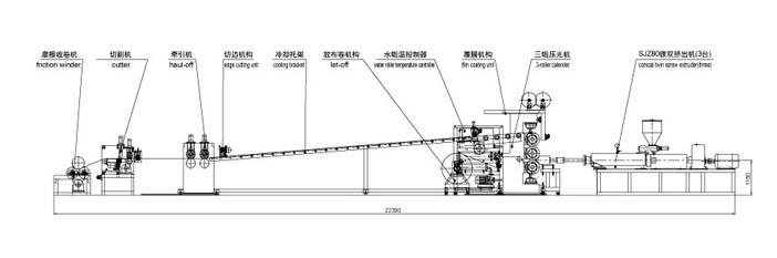 PVC、EVA、PE 防水卷材生產(chǎn)線 主要用于生產(chǎn) PVC地板革類產(chǎn)品和 PVC防水卷材產(chǎn)品。PVC 地板革具有耐磨、耐腐、防滑、防滲、阻燃的性能,廣泛用于機車、賓館、酒店、娛樂廳、展館、家庭。PVC 防水卷材可適用于工業(yè)與建筑業(yè)的各種屋面防水,地下室,水庫,堤壩,公路隧道,鐵路隧道,防空洞,糧庫,垃圾廠,廢水處理等建筑防水工程。