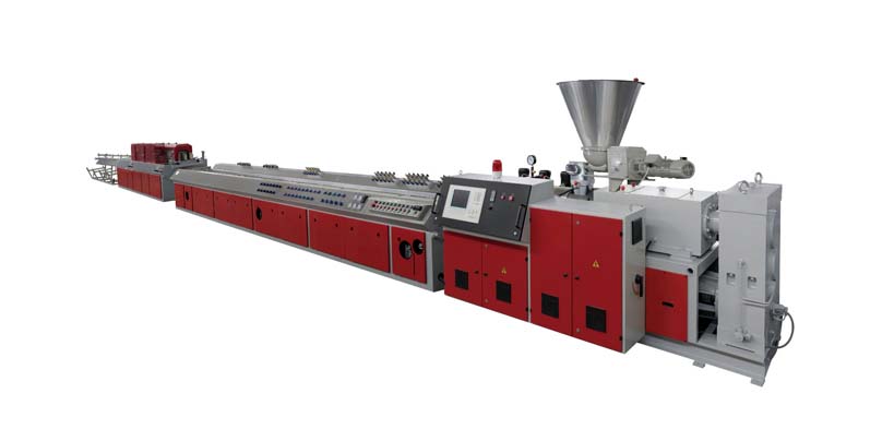 木塑擠出生產(chǎn)線:采用特殊設(shè)計(jì)的螺桿機(jī)筒、模具及擠出機(jī)加工生產(chǎn)工藝生產(chǎn)木塑產(chǎn)品。公司產(chǎn)品系列:木塑一步法厚板設(shè)備;木塑一步法異型材設(shè)備;木塑一步法裝飾材設(shè)備;木塑造粒設(shè)備;各種木塑模具。擠出機(jī)單機(jī)兩級(jí)混合直接擠出,也可造粒后兩步法擠出,省電省空間,具有產(chǎn)量高,擠出壓力穩(wěn)定,預(yù)熱加料機(jī)置于主機(jī)頂部,先抽出大部分木粉中殘留的水份,使主機(jī)加料段更加充實(shí);塑化混煉效果好等特點(diǎn)。優(yōu)化的螺桿設(shè)計(jì)使用使剪切小,不易剪斷木質(zhì)纖維,能使物料在機(jī)內(nèi)停留時(shí)間均勻。螺桿機(jī)筒采用雙金屬處理,耐磨耐腐蝕,使用壽命大大延長(zhǎng)。該生產(chǎn)線能生產(chǎn)PE、PP或PVC木塑異型材制品,主要用于托盤,包裝箱板,地板,戶外裝飾材料等,用途十分廣泛。木粉及植物纖維添加量高(最高可達(dá)50-75%);設(shè)備適應(yīng)能力強(qiáng),可同時(shí)加工PP、PE、ABS、PS等。