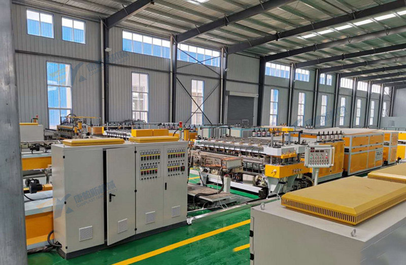 PP中空墊板生產設備一次成型生產格子板厚度2mm至12mm,以制作PP中空墊板,中空格子板周轉箱板包裝箱板底板。PP中空墊板生產生產工藝的環保中空墊板抗壓強度高、耐折、防水并且一體成型,其工藝簡單、成本低、效率高,適用于大規模的現代化自動工業化生產.PP中空墊板生產工藝經過調整后可生產周轉箱,包裝箱,適用于水果、蔬菜、冷凍海產品等多種產品的轉運包裝。